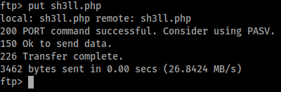 They do indeed work for FTP! We see one folder, dev. Inside is some code for a site. We download some files and sift through them, nothing to great. However, what is interesting about this directory permissions is that we seem to have the ability to upload files to it. We’ll modify one of our PHP Shells and upload it to the dev directory.