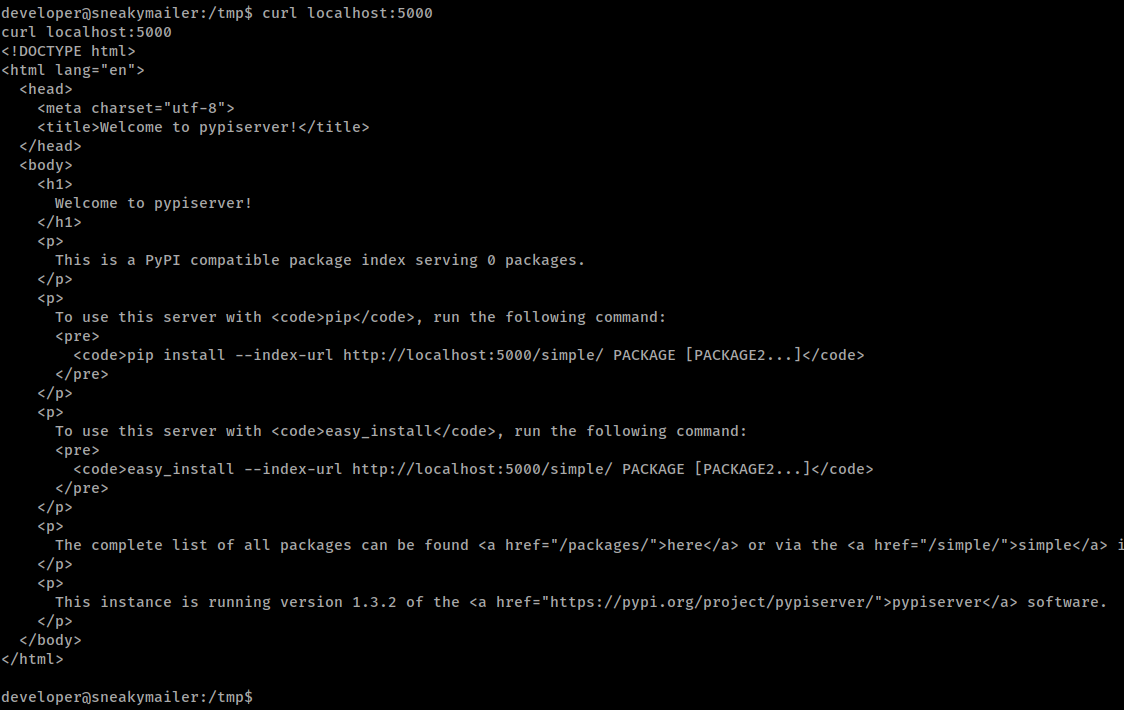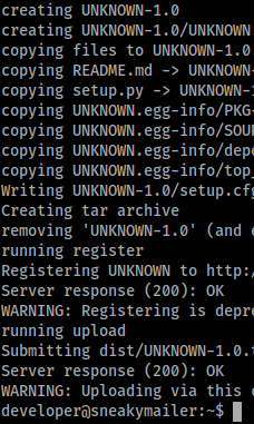 It is not the same password. Bummer. More research leads us to creating our own package that has a reverse shell in it. If we can get pypi to load it, we might be able to execute code. Here