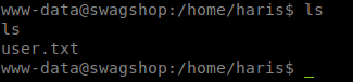 Now we can path to home to see what we have. We see an account called haris, we move to it and cat the contents of user.txt!