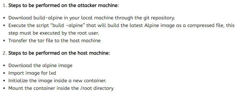 The enumeration doesn’t come back with much. the lxd group is is a slightly different group to see a user as a part of. Some googleing around for ‘Priv esc lxd` lead me to this resource