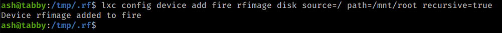 lxc config device add fire rfimage disk source=/ path=/mnt/root recursive=true