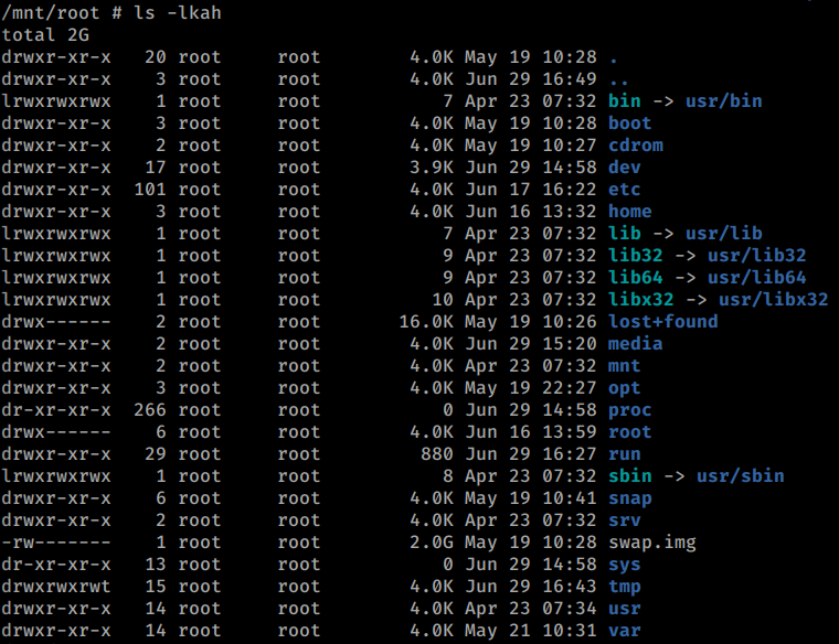 Now that we’re in the contiainer we navigate to /mnt/root like the PoC says. This allows us to see all the resources from the host machine.