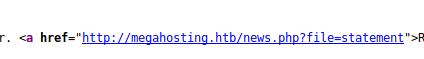We see that the site is refereted to as megahosting.htb and there is a link toe a .php location with an argument.