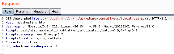 What we really want to take away from this is that it gives us quite a few paths. The one of particular interest is /etc/tomcat9/tomcat-users.xml. Now this isn’t that standard path you might think. It’s actually the path WITHIN the tomcat9 instance.