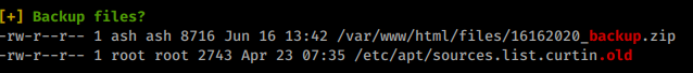 We’ll upgrade our shell and look for a way to pivot into ash. We’ll download linpeas and start enumerating. We see a file listed as 16162020_backup.zip