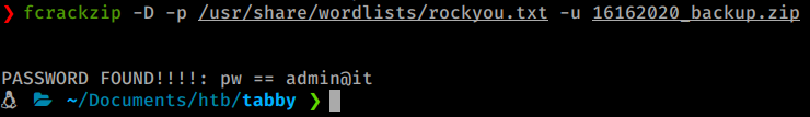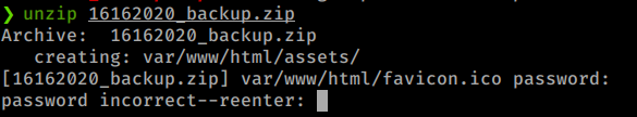 fcrackzip -D -p /usr/share/wordlists/rockyou.txt -u 16162020_backup.zip