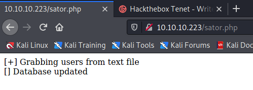 Sure enough, the 10.10.10.223/sator.php finds a hit: