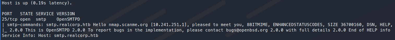 Service Info: Host: REALCORP.HTB; OS: Linux; CPE: cpe:/o:redhat:enterprise_linux:8