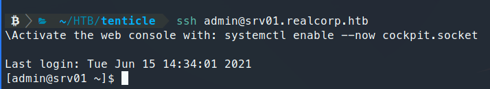 After we do that, we should be able to SSH into the machine as admin.