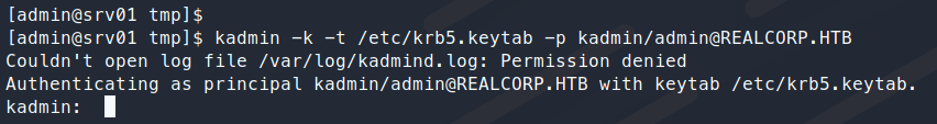 If this works, we are prompted with the kadmin interface.