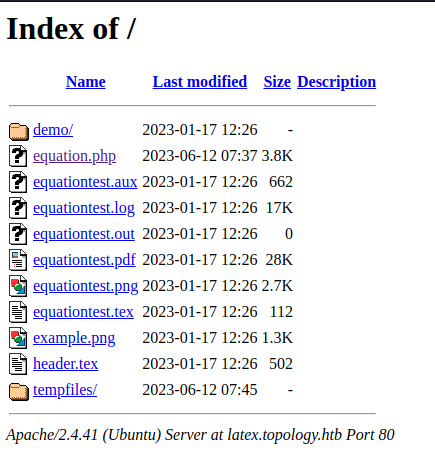 While that ran, we checked into the latex subdomain. We see a file listing: