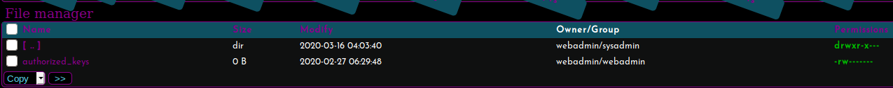What we want to do is find a way in. If we look around the webadmin home directory we see that the user has the ability to read and write to the approved_keys file in .ssh.
