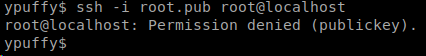 Now that we have a key, lets try to ssh as root. Denied.